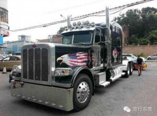 东莞一间家具厂老板,花了489万从美国购买了一台Peterbilt 389卡车,也就是《 变形金刚》中擎天柱的原型。但在上牌的时候,车管所要求在车门喷印荷载人数、核定载质量及所属地的字样,并在车尾张贴警示贴。