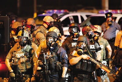 美国密苏里州圣路易斯县弗格森地区骚乱不仅折射出美国社会种族歧视顽症,也反映了美国警察“军事化”趋势。全副武装的警员用橡皮子弹、催泪弹、装甲车对付示威民众,甚至把狙击步枪对准示威人群,引发民众对警察装备和行动军事化倾向的忧虑。