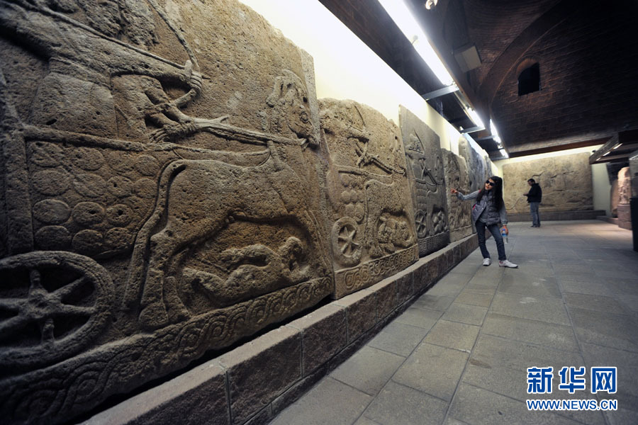 图为博物馆内展出的战车浮雕。玛尔特•梅杰特摄