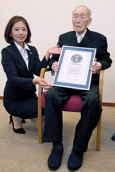 原标题:日本111岁男子被认定为世界最长寿男性(图)
