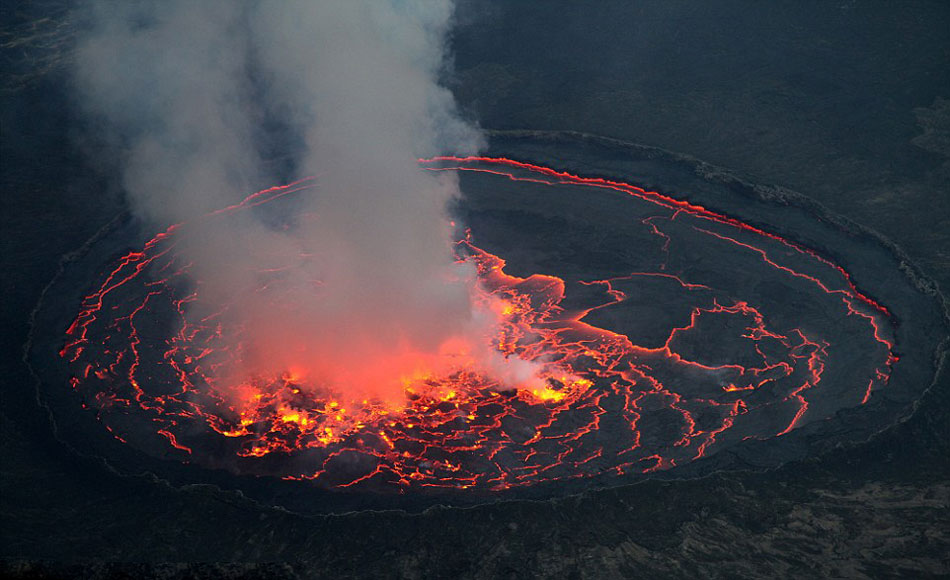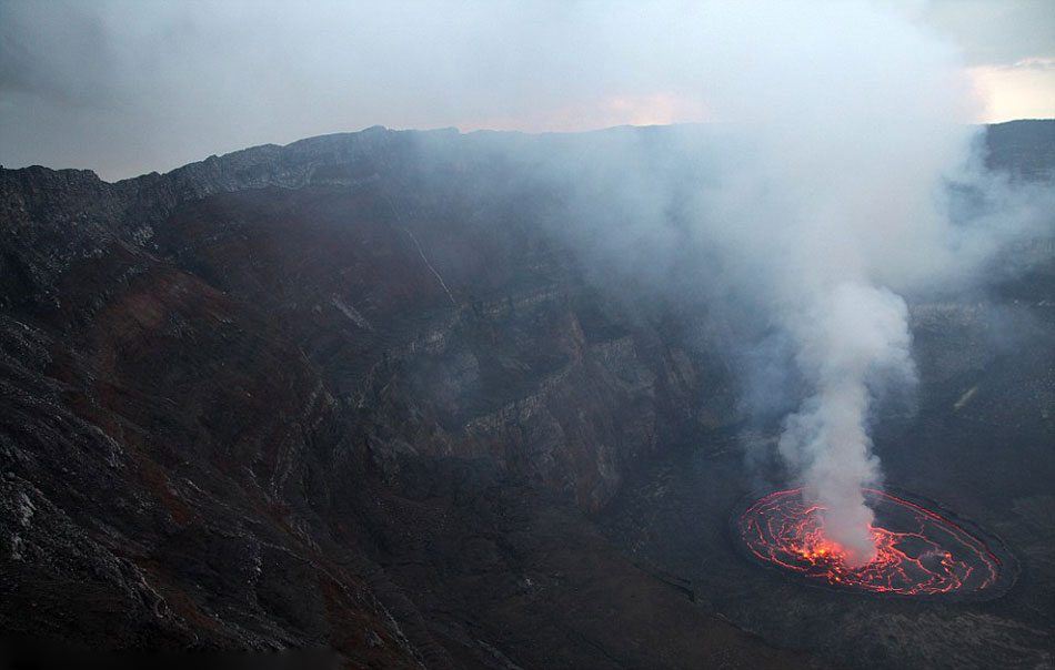 【环球网综合报道】据英国《每日邮报》8月20日报道,俄罗斯莫斯科的一位名叫米哈伊尔的32岁男子与妻子阿纳斯塔西亚,在刚果尼拉贡戈山拍到了壮丽的熔岩湖,照片中熔岩湖冒着浓烟,剧烈翻滚着。