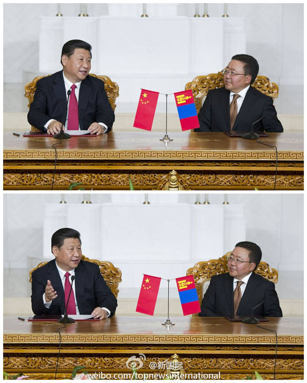 新华网北京8月21日电 据新华社“新国际”微博报道,习近平主席21日同蒙古国总统额勒贝格道尔吉会见记者时说,为将中蒙全面战略伙伴关系落到实处,中蒙两国将全面扩大经贸务实合作,争取到2020年实现双边贸易额100亿美元的目标,同时要把互联互通和大项目合作作为两国合作的优先方向。