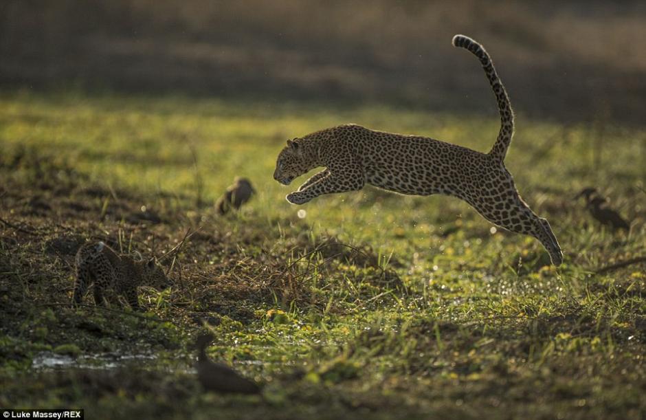 卢克称,他花了2周的时间,才找到当地人叫做“爱丽丝”的带着两只3个月小豹子的雌豹。随后他跟着他们3个月,看到豹子捕猎,幼崽嬉戏,以及鬣狗对幼崽的袭击等等,并将这些瞬间一一捕捉。