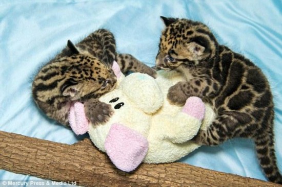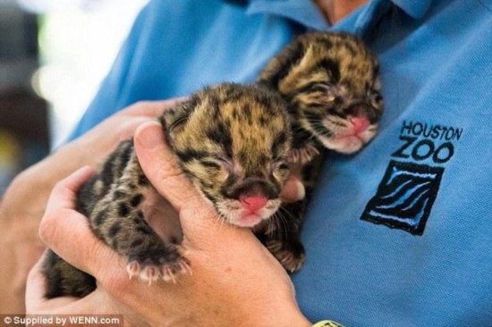 今年早些时候,两只云豹幼仔在美国得克萨斯州的休斯敦动物园出生。而今日,一组可爱云豹宝宝的照片首次在网上公布。
