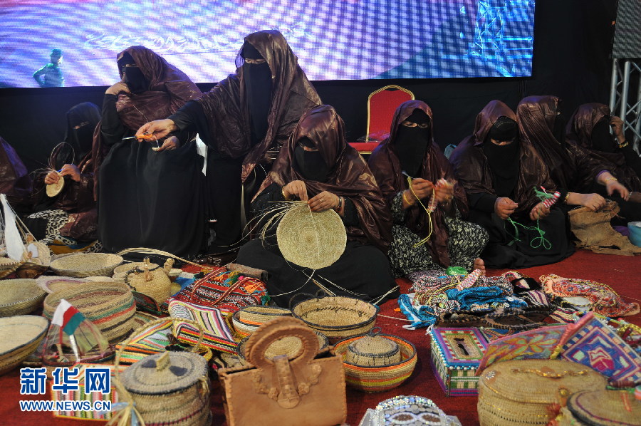 在萨拉拉旅游节上,阿曼妇女现场制作手工艺品,新华网记者孙磊摄