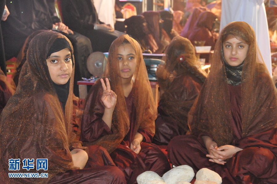 在萨拉拉旅游节上,准备登台演出的阿曼小演员,新华网记者孙磊摄