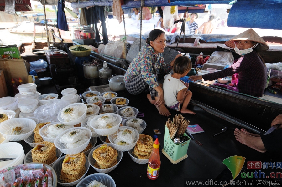 nEO_IMG_2014年8月22日,在广西东兴市边民互市贸易区的码头上,餐船上已经准备好了快餐面,这是装卸工人的午餐。