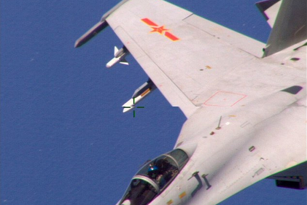 美国军方人士透露,本周一,一架美国海军P-8A巡逻机在东海上空进行“例行侦察”时,遭遇中国一架苏-27战斗机接近。据称当时中国战机已经接近至距离美方不足50英尺距离(约合15.24米),这是今年美国飞机在东海上空第二次遭战斗机接近。这张图来自于美国海军海岸的检查侦察机8月19日的照片。