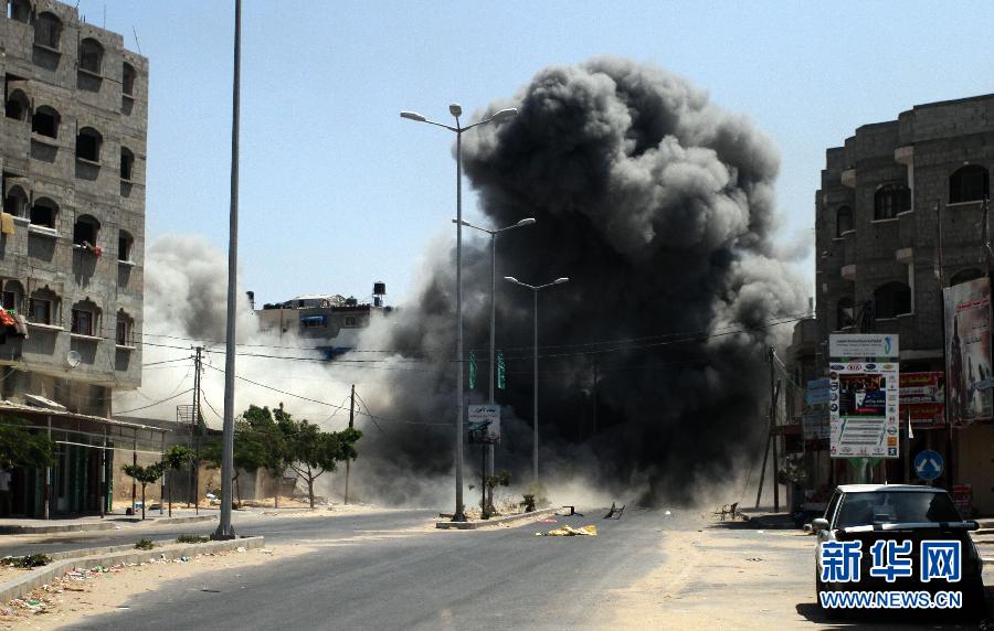 8月23日,以军导弹击中加沙城一栋巴勒斯坦人的房屋。埃及斡旋下的加沙长期停火第三轮谈判19日宣告破裂。此后,又有60余名巴勒斯坦人在以军轰炸中丧生。 新华社发(亚西尔·库迪摄)