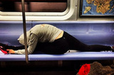 纽约客流行地铁里练瑜伽 姑娘大叔齐劈叉(组图)