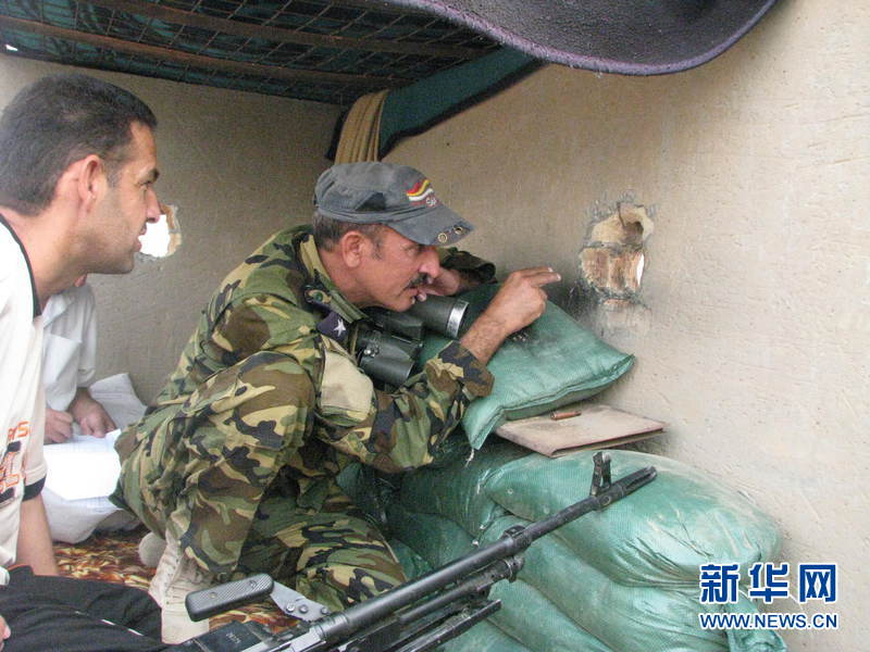 8月19日,巴格达以北90公里的杜鲁伊亚镇, 一名军官和部族成员在查看敌情。
