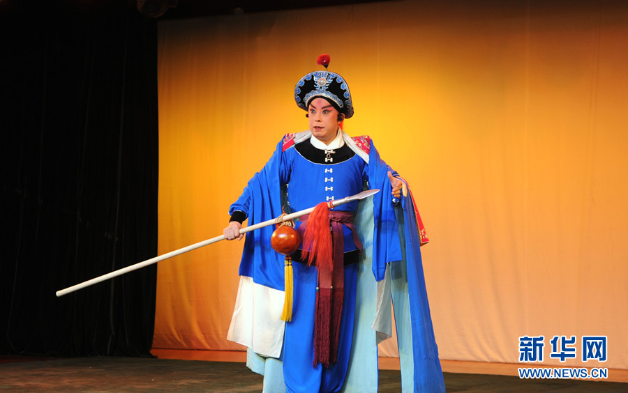 京剧在曼谷讲述中国故事”8月23日,中国国家京剧院带来的“与京剧面对面”活动在曼谷中国文化中心隆重登场。图为京剧艺术大师李少春先生的代表剧目《野猪林》场景,表演者为当代京剧艺术的领军人物于魁智先生。新华网记者 毕尚宏 摄