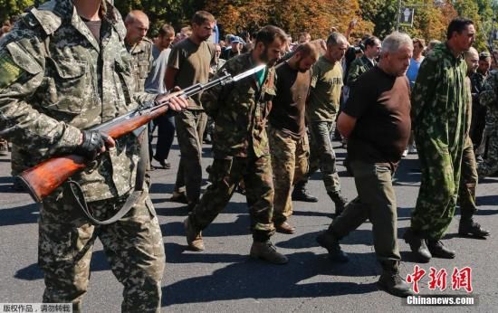 当地时间2014年8月24日,在顿涅茨克市中心进行了俘虏大游街,有近百名政府军俘虏被游街,数千名居民向俘虏喝倒彩。