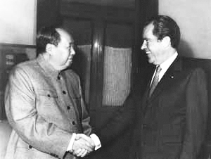 尼克松与勃列日涅夫的峰会相当成功。而在此之前,他还进行了一次更大胆的行动——访问中华人民共和国。与周恩来总理举杯畅饮茅台,并与毛泽东主席进行了气氛融洽的会谈后,双方发表了《上海公报》,承诺放弃历史敌意,努力使双边关系正常化。