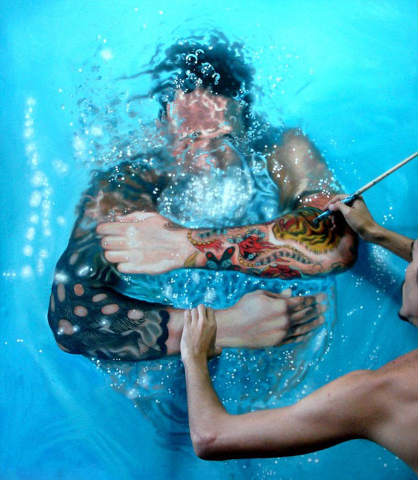 惊叹!委内瑞拉艺术家手绘游泳者逼真似实景(组图)