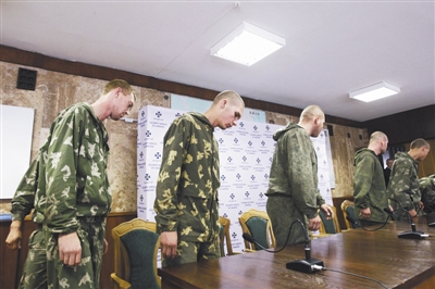27日,乌克兰基辅,被乌克兰逮捕的“越境”俄罗斯士兵出席新闻发布会。