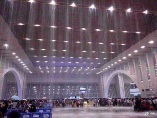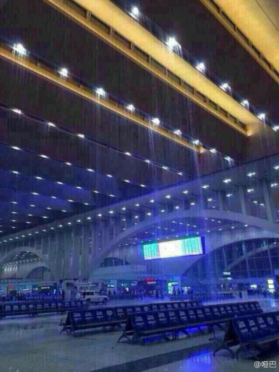原标题:石家庄遭遇强降雨 新火车站变“水帘洞”(图)