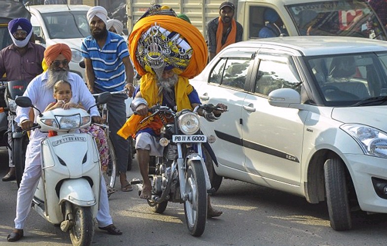 与其他锡克教徒的包头巾相比,茂尼的头巾堪称庞然大物。(网页截图)