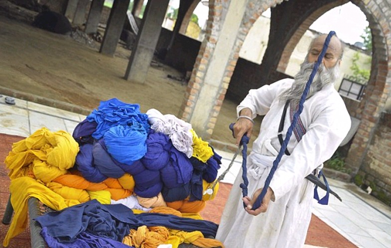 据英国《每日邮报》8月28日报道,印度旁遮普邦(Punjab)60岁的虔诚锡克教徒阿凡达·辛格·茂尼(Avtar Singh Mauni)拥有世界上最大的包头巾,长645米,重达45公斤,穿戴需要6个小时。