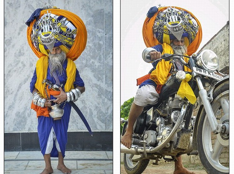 茂尼说,这些紫色和橙色的布重量为30公斤。但如果加上其他装饰品,总重量就达到45公斤。如果再加上他的佩剑和沉重的手镯,他身上需要再加39公斤的重量。由于包头巾过宽过高,茂尼无法乘坐汽车,为此只能骑摩托车去朝圣。