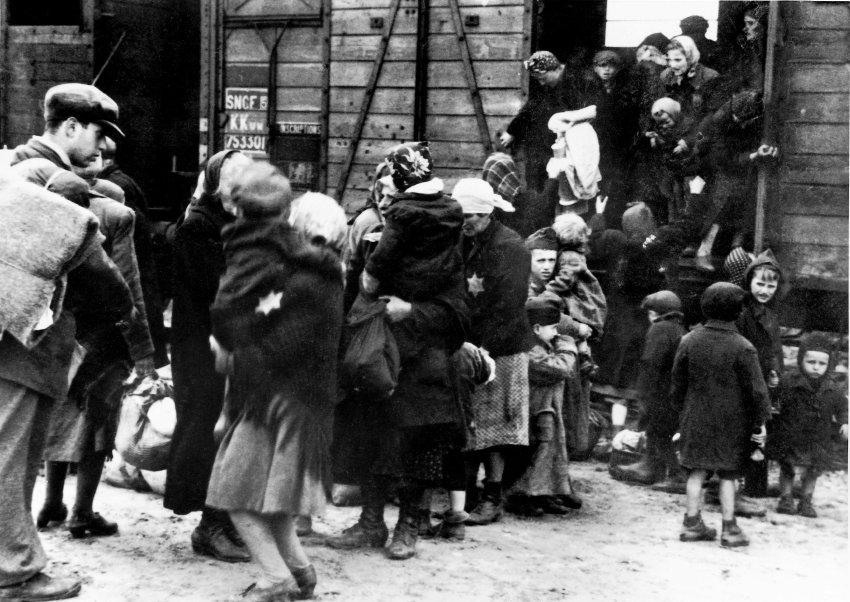 图为1944年,匈牙利籍犹太人被火车运送至奥斯维辛。