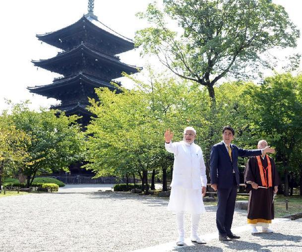 日本首相安倍晋三陪同印度总理莫迪参观京都东寺 8月31日,在日本京都东寺,日本首相安倍晋三(右)陪同印度总理莫迪参观。 当日,日本首相安倍晋三陪同到访的印度总理莫迪参观京都东寺。 >>>点击详细