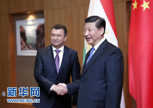 习近平强调,随着中国经济发展,我们将扩大和深化同其他国家的交往合作,欢迎其他国家利用中国发展的机遇,携手实现发展。中方提出的共建丝绸之路经济带倡议是互利共赢的,欢迎塔方积极参与。双方要把握当前有利时机,抓住利益契合点,扎实推进合作。两国政府要发挥指导、协调、监督作用,制定实施具体合作项目,抓好落实。