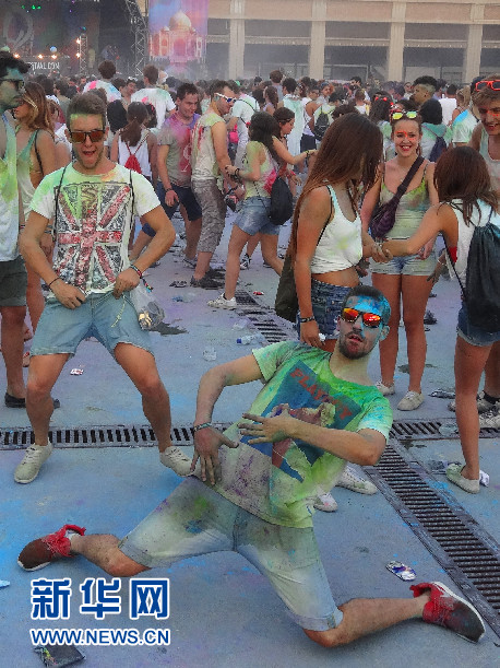 “2014巴塞罗那霍利节”现场的年轻人 (新华社记者周喆拍摄)