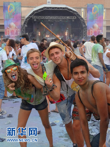 “2014巴塞罗那霍利节”现场的年轻人 (新华社记者周喆拍摄)
