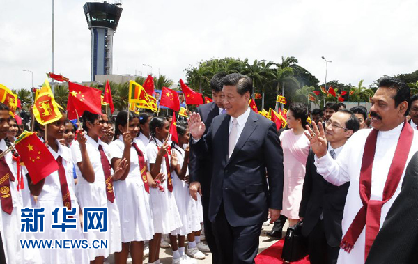 新华网科伦坡9月17日电(记者黄海敏 杨梅菊)国家主席习近平17日结束对斯里兰卡的国事访问,启程前往艾哈迈达巴德开始对印度进行国事访问,斯里兰卡总统拉贾帕克萨专程到机场送行。