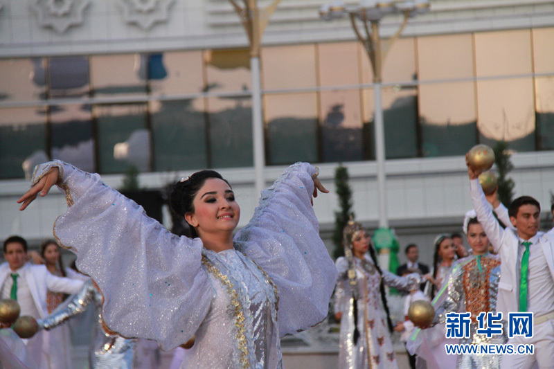 身着节日盛装的土库曼斯坦美女在跳舞 记者 卢敬利摄