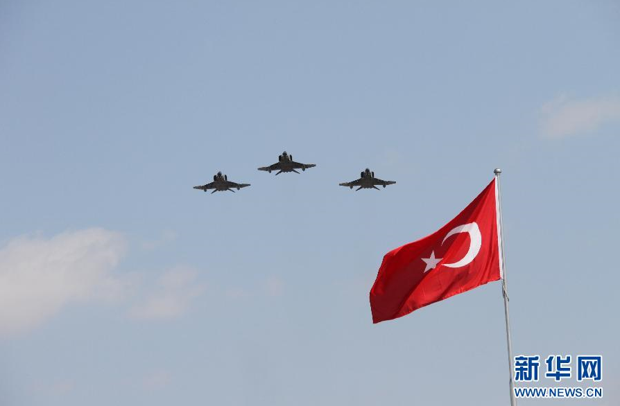 8月30日,在土耳其安卡拉,受阅战斗机方阵通过检阅广场。当日,土耳其举行盛大的“胜利日”阅兵式,庆祝土耳其“胜利日”92周年。新华社记者李铭摄