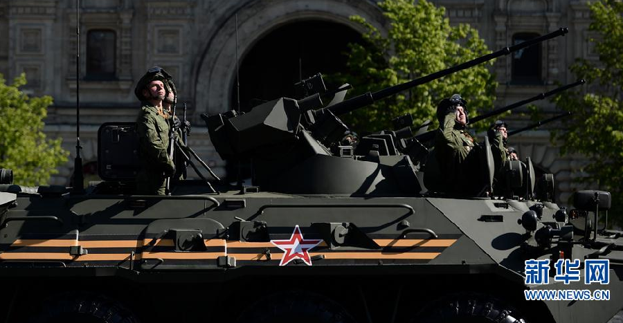 在俄罗斯莫斯科红场举行的纪念卫国战争胜利69周年阅兵式上,俄罗斯BTR-82A装甲车接受检阅。 新华社记者贾宇辰摄