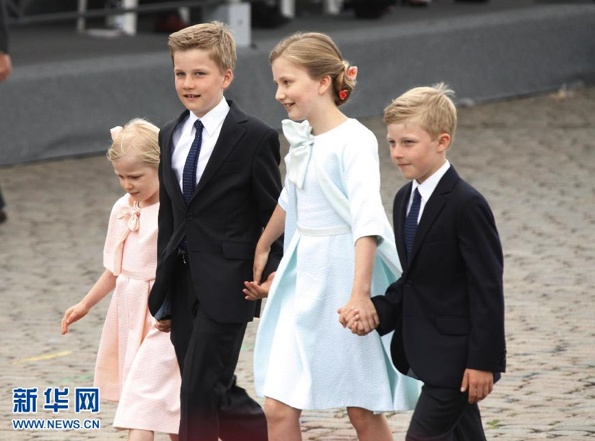 7月21日,在比利时首都布鲁塞尔,比利时国王菲利普的四个孩子携手出席阅兵式。 当日,比利时举行阅兵式庆祝国庆日。 新华社记者王晓郡摄