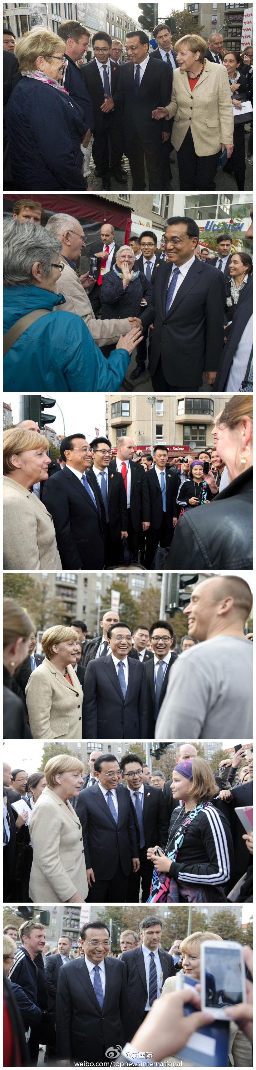 新华网北京10月11日电 据新华社“新国际”微博报道,中国国务院总理李克强和德国总理默克尔10日下午在共同会见记者后,共同乘车前往出席中德经济技术论坛,途中他们临时停车,与在街头的德国民众亲切交流互动。