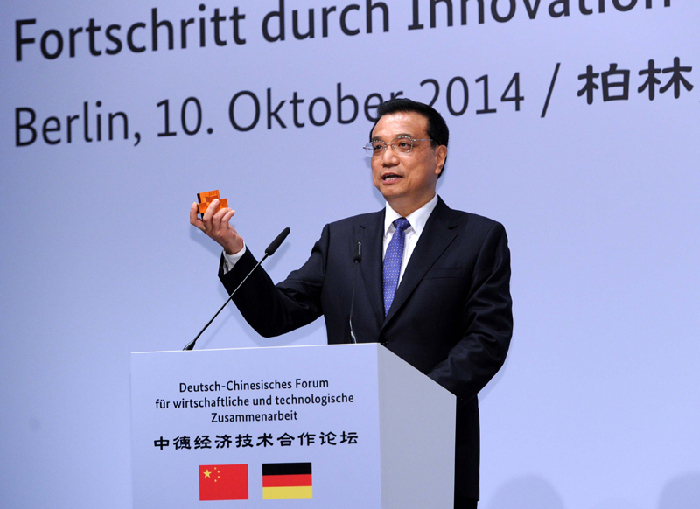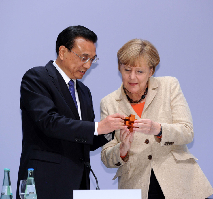 与默克尔共同出席第七届中德经济技术合作论坛时,李克强在致辞最后提起,这次默克尔总理陪他逛了当地一家超市,买了两张明信片送给他的家人,而他也带来一份礼物,是中国天津中德职业技术学院学生的作品,学生们希望他在公开的场合把这个礼物送给默克尔,以表达对中德制造业深度融合的期待。
