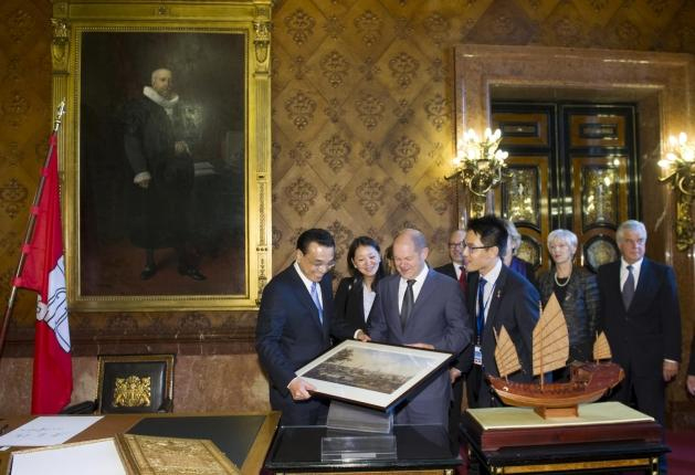 “汉堡素有‘世界桥城’的美誉,2000多座桥构成这个城市独特的风景线。在我看来,汉堡还有更多无形的桥通向世界。汉堡自古就有自由贸易传统,”克强总理说。