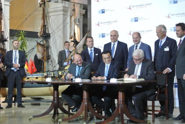 “我很赞赏汉堡峰会用了这样一个主题——China meets Europe. 中国和欧洲相遇的结果是什么?是幸运。”克强总理说。