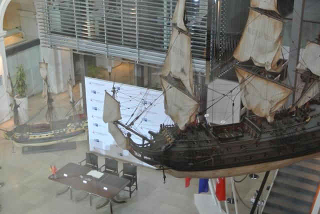 在中欧论坛汉堡峰会第六届会议的举行地汉堡商会的签字大厅里,放着一艘帆船模型。天花板上也悬挂了很多船只模型。