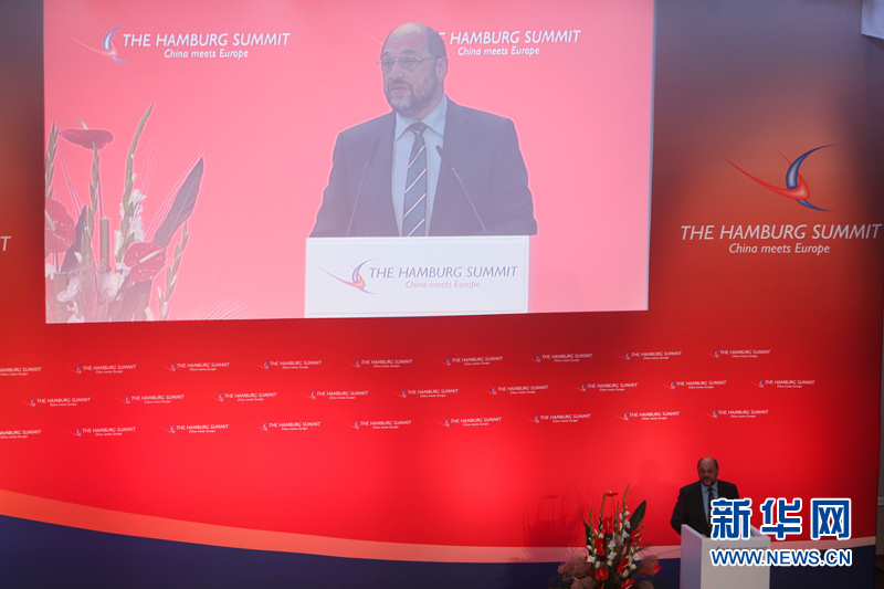 10月11日,在德国汉堡举行的中欧论坛汉堡峰会上,欧洲议会主席马丁•舒尔茨发言。中欧论坛汉堡峰会第六届会议11日在德国汉堡闭幕。本届峰会以“中国与欧洲相遇”为主题。来自中欧政治、经济和学术界的500多位代表聚集在一起,探讨中欧经贸合作未来趋势、中国经济的绿色发展等重要议题。新华社记者张帆摄