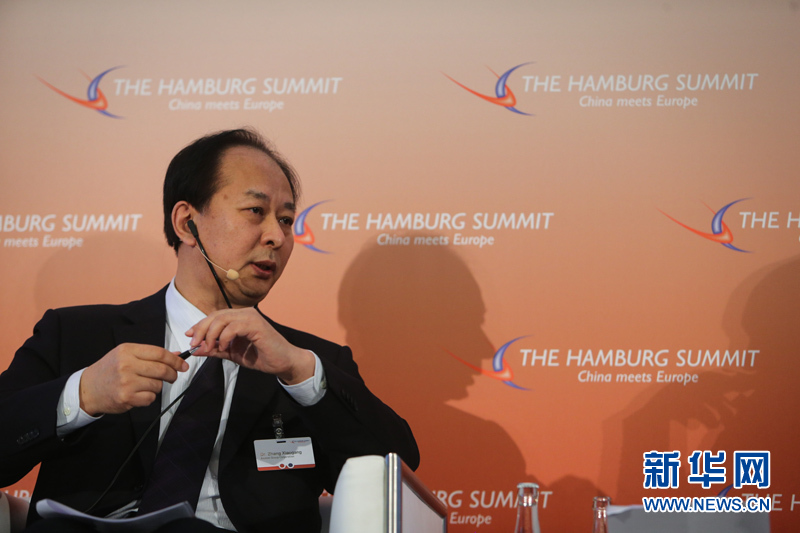10月11日,在德国汉堡举行的中欧论坛汉堡峰会上,鞍钢集团公司总经理张晓刚博士发言。中欧论坛汉堡峰会第六届会议11日在德国汉堡闭幕。本届峰会以“中国与欧洲相遇”为主题。来自中欧政治、经济和学术界的500多位代表聚集在一起,探讨中欧经贸合作未来趋势、中国经济的绿色发展等重要议题。新华社记者张帆摄