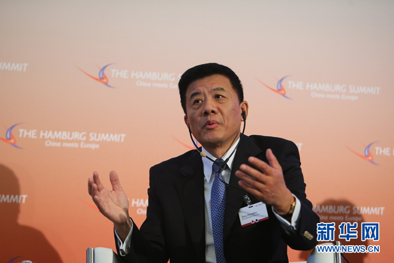 10月11日,在德国汉堡举行的中欧论坛汉堡峰会上,中国五矿集团公司董事长周中枢发言。中欧论坛汉堡峰会第六届会议11日在德国汉堡闭幕。本届峰会以“中国与欧洲相遇”为主题。来自中欧政治、经济和学术界的500多位代表聚集在一起,探讨中欧经贸合作未来趋势、中国经济的绿色发展等重要议题。新华社记者张帆摄
