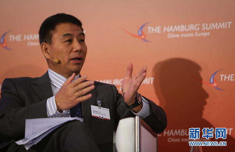 10月11日,在德国汉堡举行的中欧论坛汉堡峰会上,世界贸易组织副总干事易小准发言。中欧论坛汉堡峰会第六届会议11日在德国汉堡闭幕。本届峰会以“中国与欧洲相遇”为主题。来自中欧政治、经济和学术界的500多位代表聚集在一起,探讨中欧经贸合作未来趋势、中国经济的绿色发展等重要议题。新华社记者张帆摄