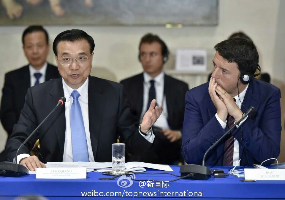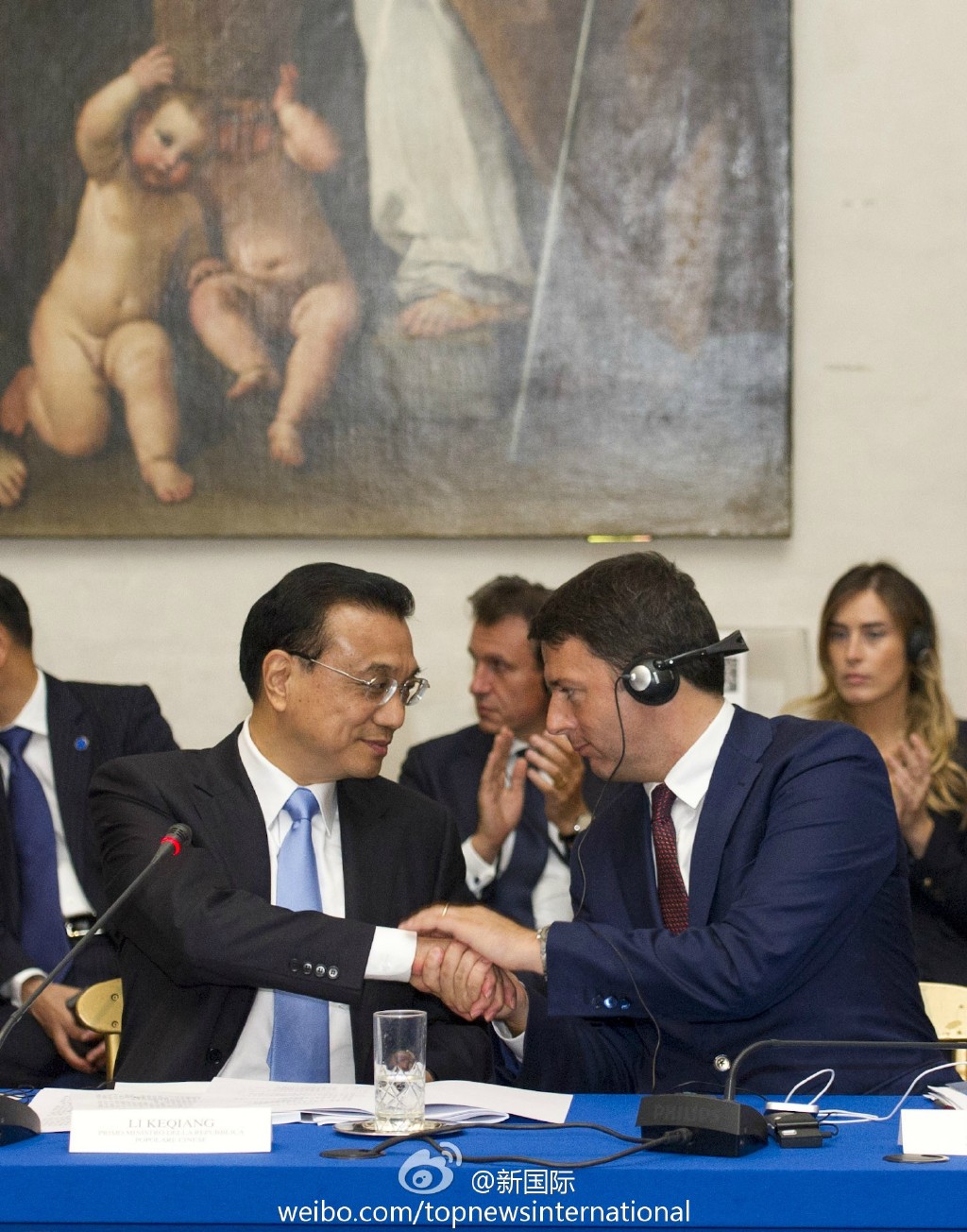 新华网北京10月15日电 据新华社“新国际”微博报道,中意两国总理14日在罗马共见两国企业家代表,李克强说,企业界是推动两国合作的主体和生力军。当前中意都进入了依靠创新驱动的时代,这不仅需要科技创新,而且需要人文精神。希望两国企业家争做现代马可·波罗,发挥互补优势,推动企业间合作迈上创新的路程。