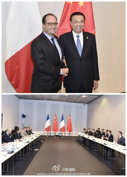 新华网北京10月17日电 据新华社“新国际”微博报道,李克强总理16日在米兰会见法国总统奥朗德时表示,希望法方进一步放宽高技术产品对华出口,鼓励两国企业全面推进联合研发、联合投资、联合生产、联合开发第三方市场,为世界提供更多“中法制造”。