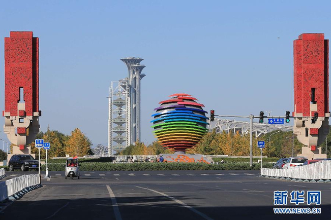 10月26日,工人在北京北辰路附近布置APEC花坛。2014年11月5日至11日,亚太经济合作组织(APEC)领导人会议周各项活动将在北京举行。新华社记者 邢广利摄