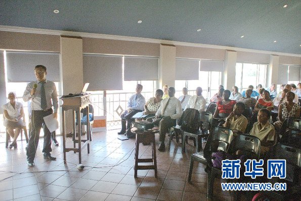 中国文化和国际教育交流中心负责人、南非汉语推广委员会委员陆志雷博士介绍汉语教学情况。新华社记者郭兴华 摄