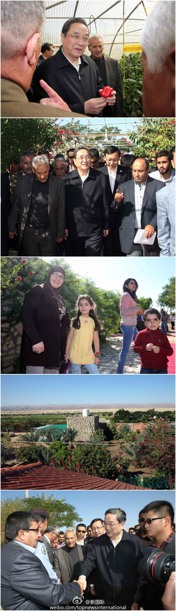 新华网北京11月8日电 据新华社“新国际”微博报道,全国政协主席俞正声8日驱车100多公里,前往约旦河谷南段的硕果农业合作社参观。他走进农家和田间大棚,详细了解蔬菜产销情况,与约旦农民共话友谊。俞正声说:“约旦人民是我们的好朋友。朋友过得好,我们表示祝贺,希望你们家园更美丽。”