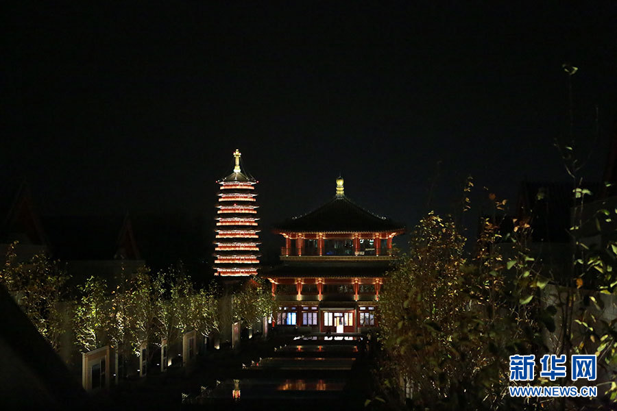 绝美!夜色中的雁栖塔和会议中心红亭 新华网记者 王帅摄(2014年11月10日摄)