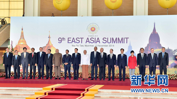 11月13日,中国国务院总理李克强在内比都出席第九届东亚峰会并发言。这是峰会开始前,与会领导人合影。 新华社记者 李涛 摄